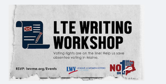 The Save Maine Absentee Voting campaign is leading the effort against Question 1. One key way to reach Mainers is through local newspapers. We need to inform our communities about Question 1 so that everyone understands what’s at stake. Voting rights, and absentee voting, are on the line. The purpose of this workshop is to guide you through the Letter to the Editor (LTE) writing process.
